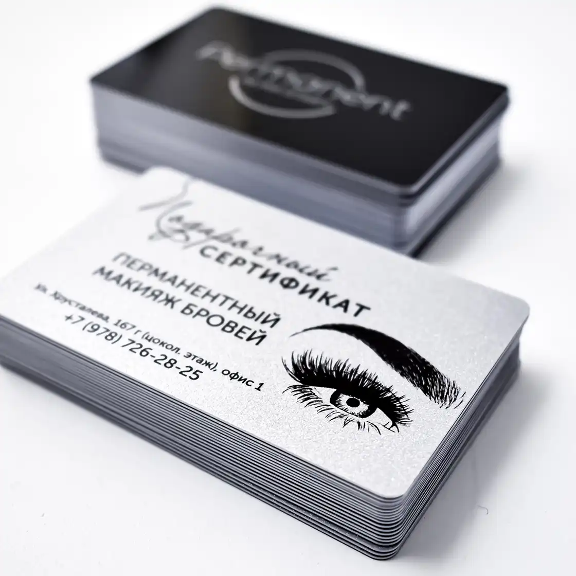 Изготовление карт проходит под контролем качества на всех этапах. Для печати используют белый, золотой, серебряный или прозрачный пластик — выбор зависит от задач и стиля компании. После нанесения изображения карту ламинируют. Можно выбрать матовое или глянцевое покрытие.